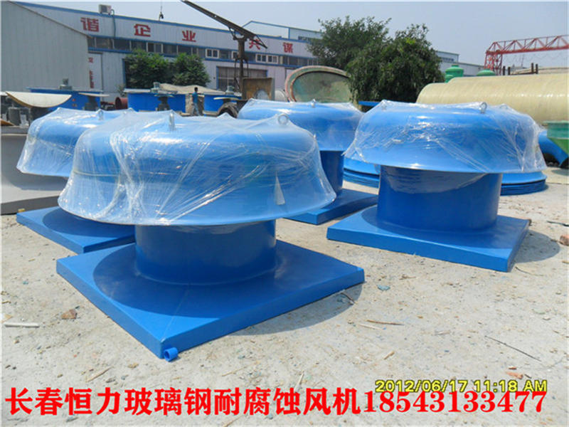 HLBLGWDFJ【吉林省長春玻璃鋼屋頂排風機】 BDW-87-4型玻璃離心式屋機風機,采用無級調速電機,選用優千周玻璃鋼材料精工制作成型,風機性能、噪聲經檢測均達到設計要求,具有效率高、耗電少、重量輕、耐腐蝕、運行可靠安裝簡單等特點。噪聲可限制在65(A)分貝以內,如噪聲值尚不能滿足要求,可在基礎和風機之間加消聲箱,本廠可為用戶代為設計、并加工制作 BDW-87-9型為普通玻璃鋼屋頂風機,在沒有嚴重腐蝕性介質的情況下運行,不防爆,可在一般通風換氣中使用,亦可加工成隔爆型玻璃屋頂風機,在玻璃原料中加入防靜電炭素材料,并采用隔爆型電機可在有防爆要求的工房內使用。